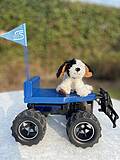 Er hat größere Reifen, einen stärkeren Motor und eine bessere Batterie eingebaut. Es gibt auch zwei Lampen, die mit einem extra Schalter angestellt werden können. Die zwei Fahnenstangen mit dem neuen Namen durften natürlich nicht fehlen.