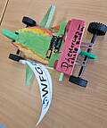 Der Flecki Flitzer der Schillerschule Unna-Massen besticht durch sein atemberaubendes Design. Die riesigen Reifen und die gute Federung ermöglichen es dem Flitzer, fast alle Untergründe zu meistern. Sollte doch mal ein Hindernis zu groß sein, wird es dank der Fernsteuerung leichtfertig umkurvt.