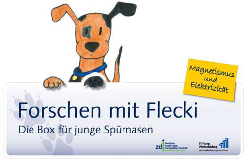Bei einer Grundschulaktion, bei der es sechs Forscherpakete mit Lehrkräftefortbildun-gen zu gewinnen gab, haben sich 41 Grundschulen (von 65) aus dem Kreisgebiet beteiligt. Leider konnten nur 6 Schulen mit dem Paket ausgestattet werden. Wegen des enormen Interesses haben wir uns dafür eingesetzt, allen Grundschulen im Kreis ein entsprechendes Angebot zu ermöglichen. So wurde unter unserer Federführung, gemeinsam mit regionalen Unternehmen, die Know-How und Materialspenden eingebracht haben, ein „Forscherpaket“ zum Thema Magnetismus und Elektrizität entwickelt. Flecki war geboren!